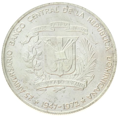 Dominikanske republik - 1 peso 1972 - Centralbank - sølv - KM# 34