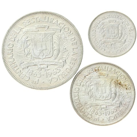 Dominikanske republik - 1/2 peso, 25 og 10 centavos 1963 - Genoprettelse af Republikken - sølv - UNC