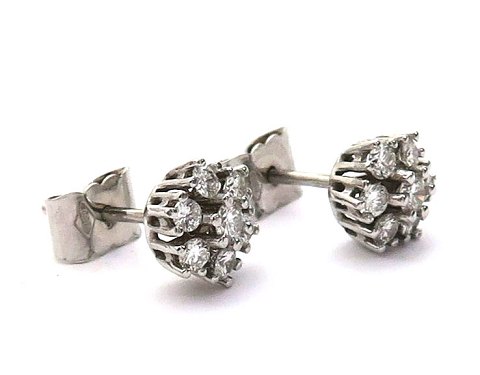Par Klarlund ørestikker af 14 kt. hvidguld, prydet med 14 brillantslebne diamanter, Wesselton vvs i roset, tilsammen ca. 0,85 ct. front diameter 9 mm., samlet vægt ca, 2 gr.