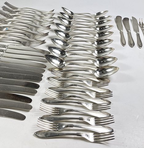 12 middagsgafler - 12 middagsknive - 10 frokostgafler - 17 middagsskeer - 6 dele tátøj.