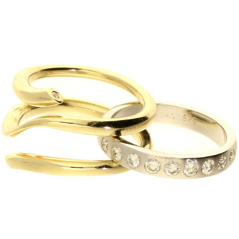 To-delt ring af guld og hvidguld 14kt. fattet med brillanter ca. 0,32ct.