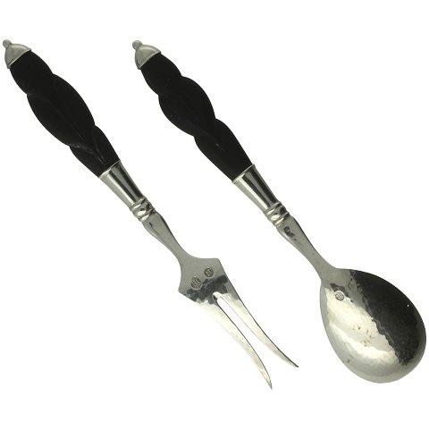 Sæt tatøj af sølv med skaft mørkbejdset træ(2).