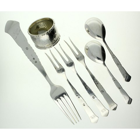 Lottet består af en servietring, tre pålægsgafler to marmeladeskeer samt en middagsgaffel.