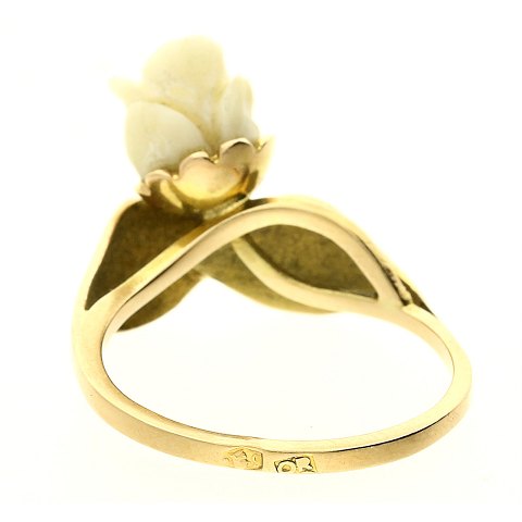 Ring af guld 14kt. fattet med hvid rose