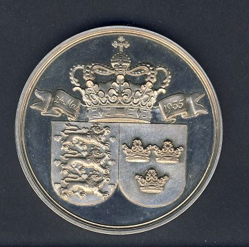 Stor Salomon medalje af sølv til minde og Frederik og Ingrids bryllup 1935 - 74 gr - dette eksemplar i originalt etui.