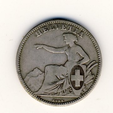 Schweiz 2 francs 1860 - siddende helvetia type!!
