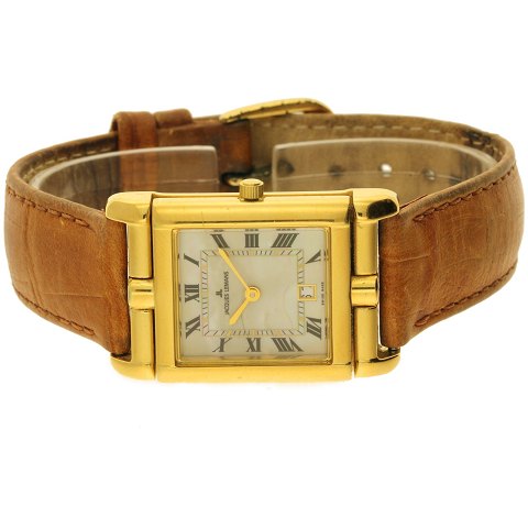 Uret har en 31 x 24mm kasse af forgyldt stål, kassen er monteret på en original brun læderrem afsluttet med originalt c-spænde som ligeledes er udført i forgyldt stål. Uret har en smuk perlemorskive med romertal og datovindue. Uret er udstyret med et quartz-værk. Uret kan drejes i stil med et Reverso.