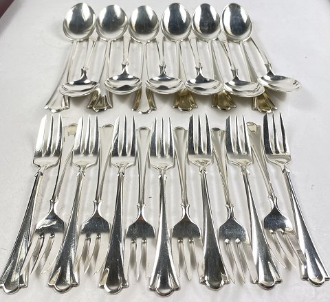 Norsk sølv - 13 frokostgafler og 12 dessertskeer.
