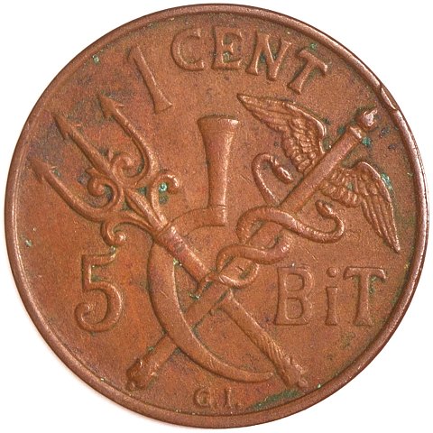 Dansk Vestindien - 5 bit / 1 cent - 1913 - Christian X - Sieg 35, H 40