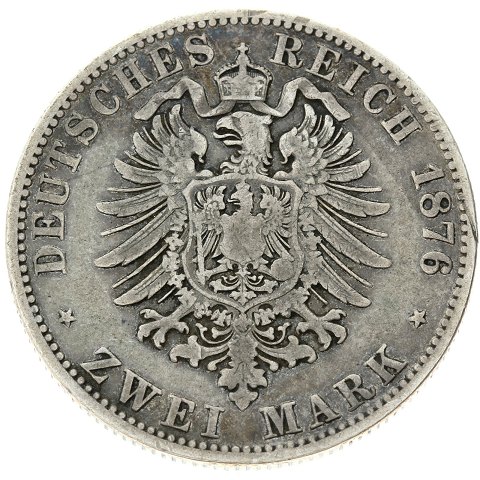 Tyskland - Mecklenburg-Schwerin - 2 Mark 1876 - A - Friedrich Franz II - sølv - KM# 320