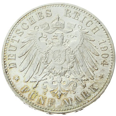 Tyskland - Hessen - 5 mark 1904 - Ernst Ludwig - sølv - KM# 373