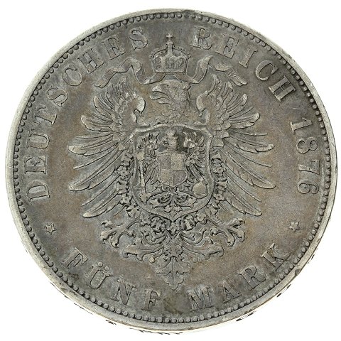 Tyskland - Hessen - 5 Mark 1876 - H - Ludwig III - sølv - KM# 353