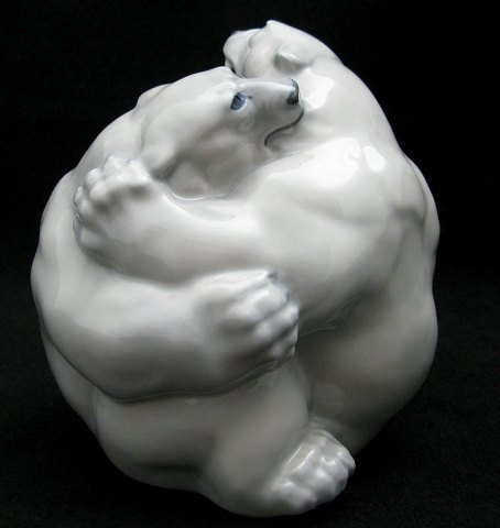 Royal Copenhagen #2317, Kæmpende isbjørne, 16 x 14 cm., Design: Knud Kyhn.
