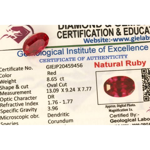 Naturlig rubin - 8,65ct. - GIE-certificeret.