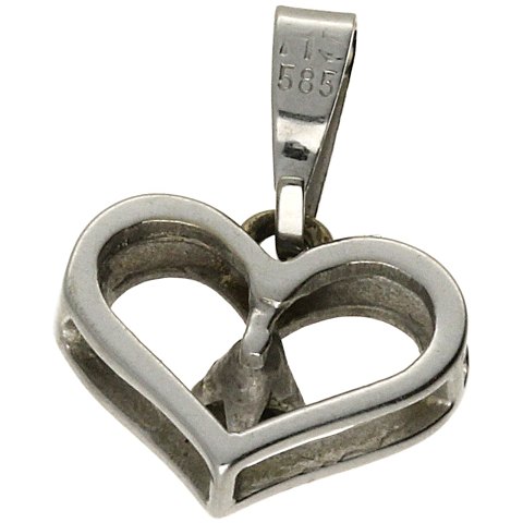 Vedhæng af hvidguld 14kt. i form af hjerte fattet med lille diamant ca. 0,01ct.