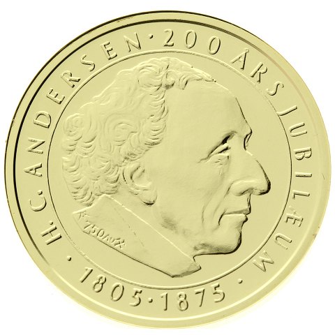 H.C. Andersen - Medaille af 18 kt. guld - 200 års Fødselsjubilæum - 5 stk