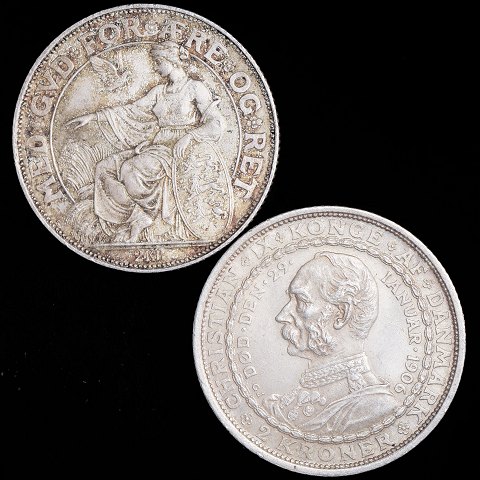 Christian IX - 2x 2 krone erindringsmønt - 1903 & 1906 - Chr. IX 40-års regeringsjubilæum & tronskiftet fra Chr. IX til Frederik VIII - Sølv - Sieg 3, H 12 & 4, H 3