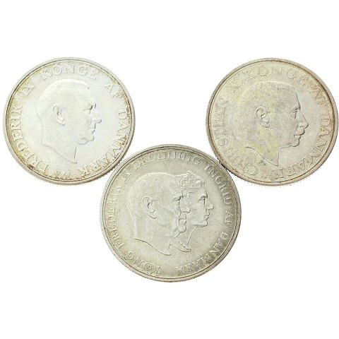 Danmark - 2 og 5 kroner - 1937, 58, 60 - sølv - jubilæumsmønt