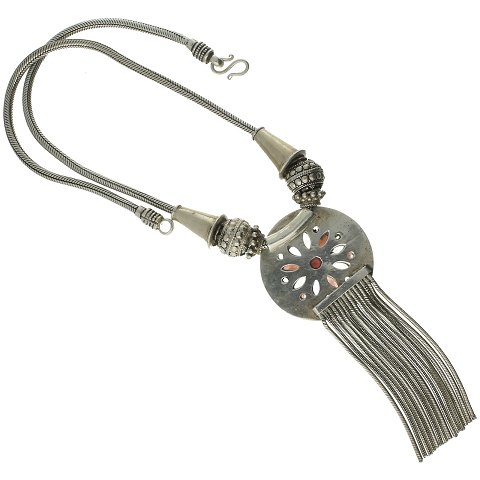 Halskæde af sterlingsølv fattet med multifarvede sten.