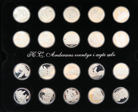 Komplet sæt H.C. Andersen eventyrmedaljer af sterling sølv (80)