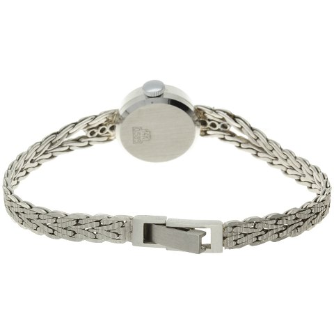 Uret har en 17mm kasse af hvidguld 14kt. kassen er med integreret lænke som ligeledes er udført i hvidguld 14kt. lænken er fattet med seks brillanter. Uret har en sølvfarvet skive med stregindeks. Uret er udstyret med et mekanisk værk med manuelt optræk.