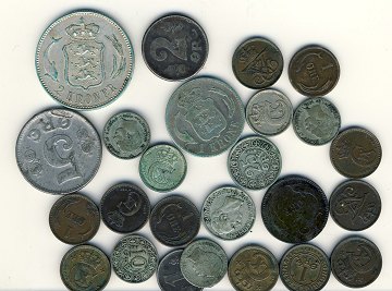 Lille lot med mønter fra før 1924 til en begyndersamling