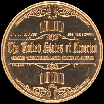 Kobbermønt med motiv - 1 ounce AVDP rent kobber .999