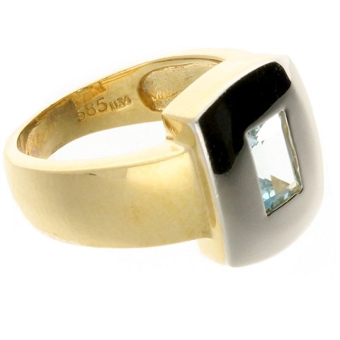 Ring af 14 kt. delvist rhodineret guld, prydet m. en facetteret aquamarin