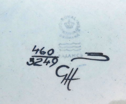 Både gryden og låget er mærket 460/3249, dog er slev mærket 448/3271. Slev er med omfattende reparationer (se billeder)
