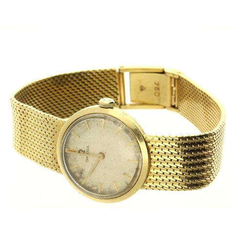 Uret har en 25mm kasse af guld 18kt. Uret er med integreret lænke som ligeledes er udført i guld 18kt. Uret har en flot champagnefarvet skive med batton og stregindeks. Uret er udstyret med en Omega cal. 620 som er et mekanisk værk med manuelt optræk.