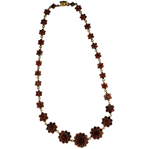 Collier af forgyldt metal fattet med talrige granater.