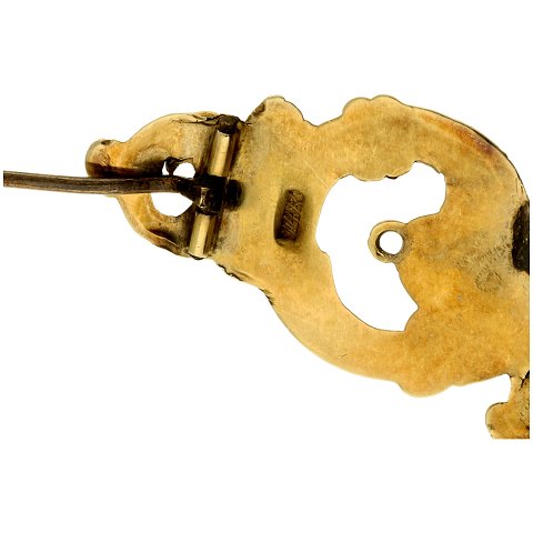 Broche af forgyldt metal fattet med granater