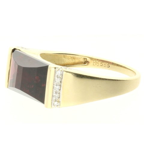 Ring af guld 14kt. fattet med lilla og klare sten.