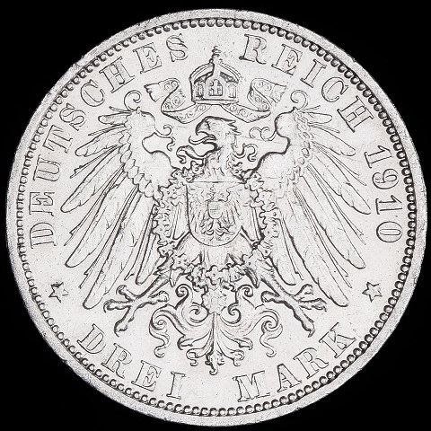 Preussen - 3 Mark - 1910 A - Wilhelm II - Sølv - KM# 527