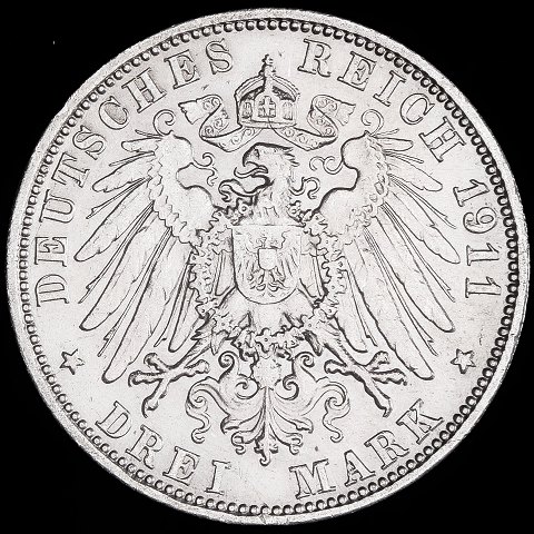 Baden - 3 Mark - 1911 G - Friedrich II - Sølv - KM# 280