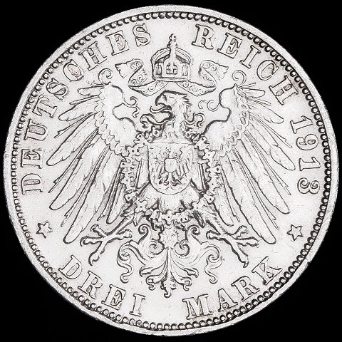 Bayern - 3 Mark - 1913 D - Otto - Sølv - KM# 996