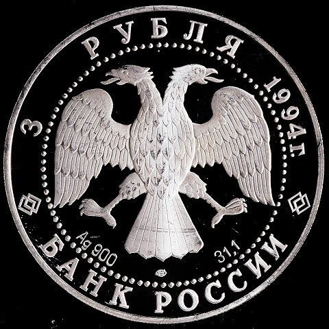 Rusland - 3 Rubler - 1994 - Smolny Institut & Kloster i St. Petersburg - Sølv (proof) - UNC - Y# 513