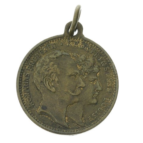 Diverse sølv smykker med mønter og 1 medalje