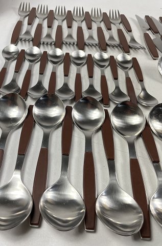 Henning Koppel for Georg Jensen - Strata - 61 dele bestik af rustfrit stål med greb af brun plast.