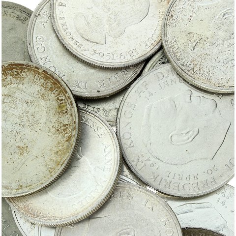 Bestående af 175 ounces finsølv i form af danske jubilæumsmønter fra kong Frederik IX regeringsperiode.