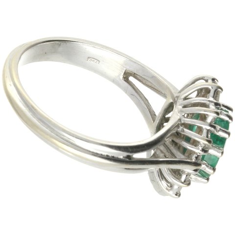 Ring af hvidguld 18kt. fattet med smaragd og brillanter ialt ca. 0,24ct.