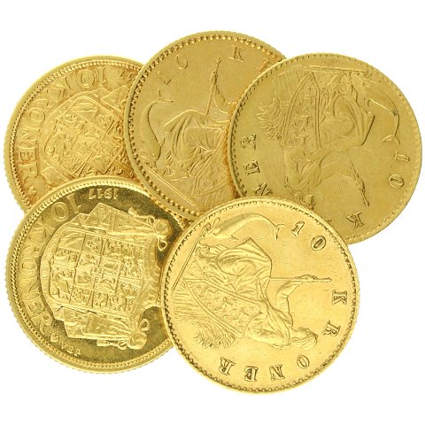 Diverse 10 kroner af guld - 5stk.