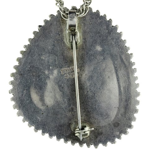 Broche/Vedhæng af sterling sølv fattet med malakit - med halskæde