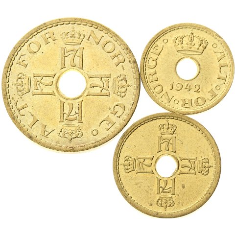 Norsk 10, 25 og 50 øre-sæt i nikkelbronze, præget i London for den norske eksilregering. Mønterne var sammen med london-sedlerne beregnet på at skulle anvendes ved en allieret landgang i Norge. De kom aldrig i brug, og hele partiet på ialt 22,5 tons blev inden 1954 tilbagesolgt til Royal Mint i England. Dog beholdt Den Kgl. Mønt i Kongsberg nogle få kilo af hver værdi.