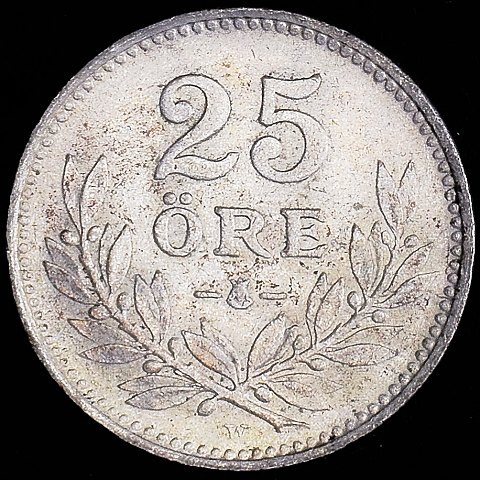 Sverige - 25 Öre - 1919 W - Gustaf V - Sølv - Sieg 34