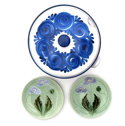 Bornholmsk keramik, stor lågterrin og to platter (3)