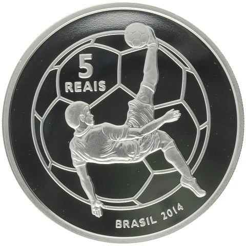 Brasilien - 5 Reais - 2014 - Fodbold VM i Brasilien, maskot - Sterlingsølv (proof) - UNC - KM# 701