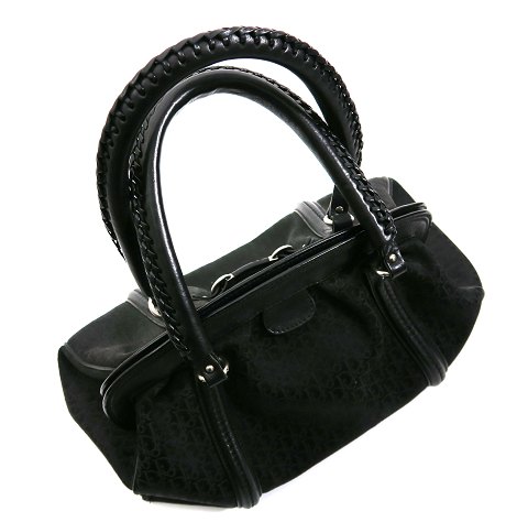 Christian Dior dametaske af jaquard canvas med håndtag, remme og lukkeforstærkning af sort læder. Magnet knaplukke, indvendig med 2 sidefag og fag med lynlås. L. 36 cm., H. med håndtag 35 cm.