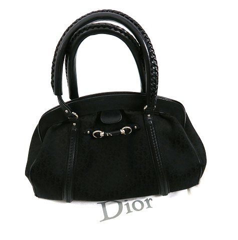 Christian Dior dametaske af jaquard canvas med håndtag, remme og lukkeforstærkning af sort læder. Magnet knaplukke, indvendig med 2 sidefag og fag med lynlås. L. 36 cm., H. med håndtag 35 cm.