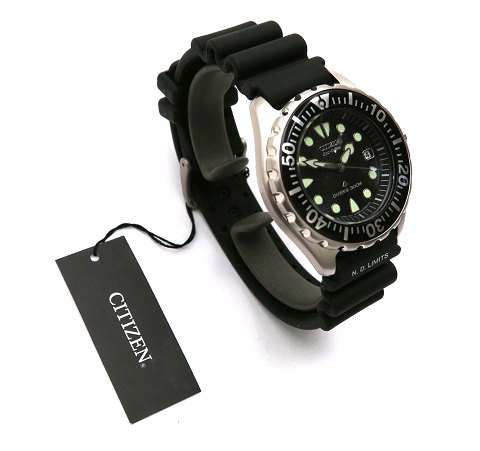 Fabriksnyt Citizen Eco-Drive Divers herrearmbåndsur, ref. nr. BN0000-04H i urkasse af matteret stål. Sort skive bag mineralglas med punktindikation, central sekundviser og datovisning i #3 position. Eco-Drive Quartzværk. Urkasse diameter 40 mm. Gummirem med metalspænde.